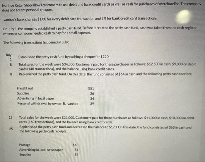 Solved Ivanhoe Retail Shop Allows Customers To Use Debit And Chegg Com